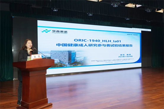 苗佳教授以《ORIC-1940-HLH la01中国成人健康参与者试验研究结果报告》为主题作报告